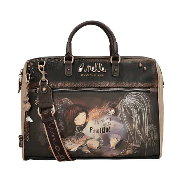 Anekke Dreamverse este o colecție inspirată din călătoria în interiorul Pământului prin imaginație. Pentru a începe această aventură, doar ascuțiți-vă simțurile și alegeți un nou favorit din colecție. Sunteţi gata? Călătoria începe acum! „Dreamverse” este un Univers unic, un loc la care nu se poate ajunge decât cu ajutorul supremului mijloc de transport posibil: imaginația. Pe parcursul acestei călătorii, vom călători prin straturile care alcătuiesc interiorul Pământului prin scenarii onirice în care vom fi însoțiți de animale imaginare și ființe opalescente. Imprimeurile sunt pline de detalii în care elemente precum stâncile și plantele sunt reinterpretate, cufundându-te într-o călătorie care nu numai că va dezvălui un nou mod de a vedea lumea, dar te va face și să călătorești adânc în tine. Dispune de două suporturi pentru cârlige fără fixare, curea de umăr reglabilă. Cureaua de umar este fata-verso, cu o broderie diferita pe fiecare parte. Interiorul este căptușit și are un buzunar. În plus, este căptușită pentru a proteja electronicele și are compartimente, astfel încât să puteți aranja totul după bunul plac. În spate, are două fermoare care, atunci când sunt desfăcute, vă permit să-l potriviți într-un cărucior, astfel încât să îl puteți lua cu dvs. în deplasare. Deoarece imaginația ta nu cunoaște limite, pregătește-te să călătorești în fiecare zi cu noul tău favorit din Anekke Dreamverse. Ia-l pe al tău acum!
